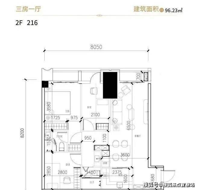 该户型的客厅、三间卧室全部朝东,虽然没有公园景观,但是好在周边的建筑都不高,所以可以看到远处留仙洞、科技园、后海的城市天际线...