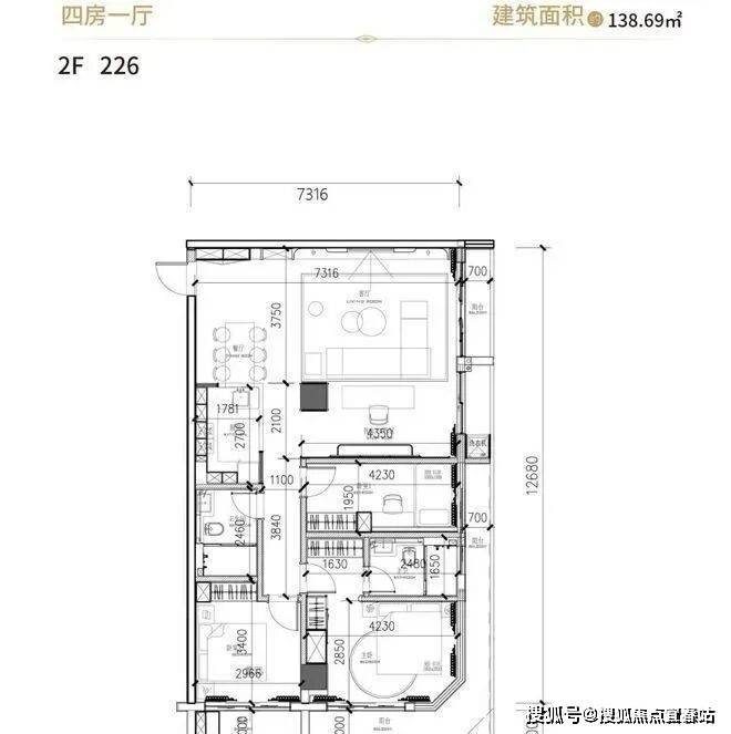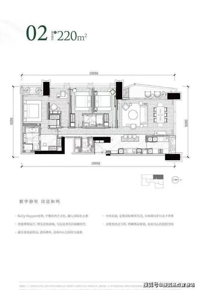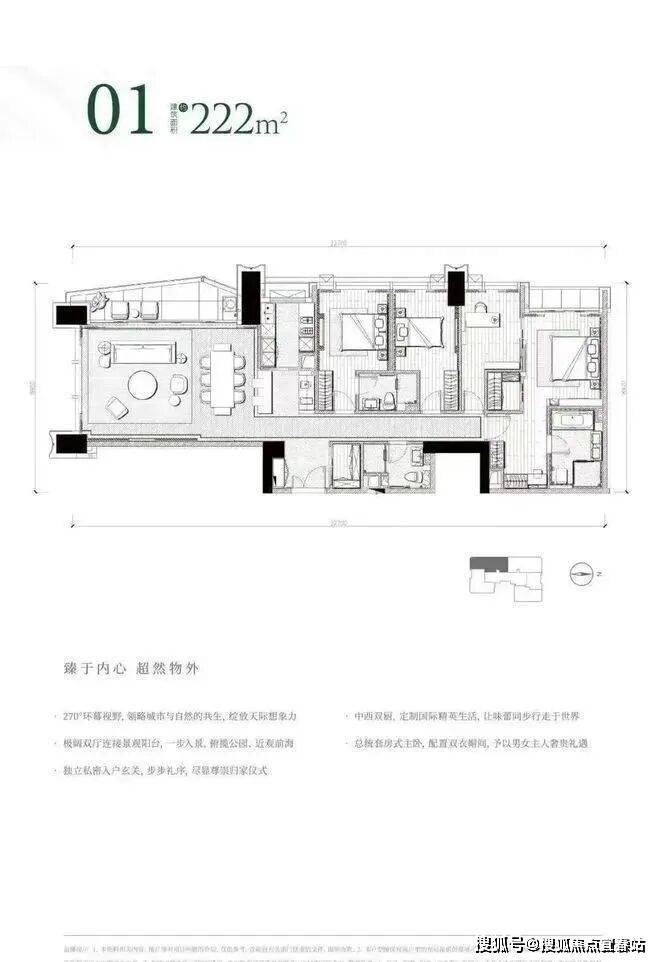 220㎡四房两厨两厅三卫,客厅、餐厅、四间卧室全部直面中山公园