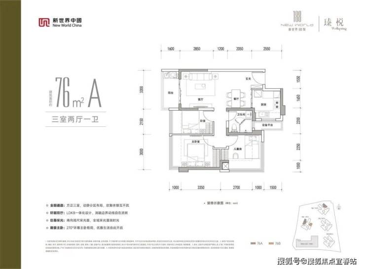 76m三房预计248万起