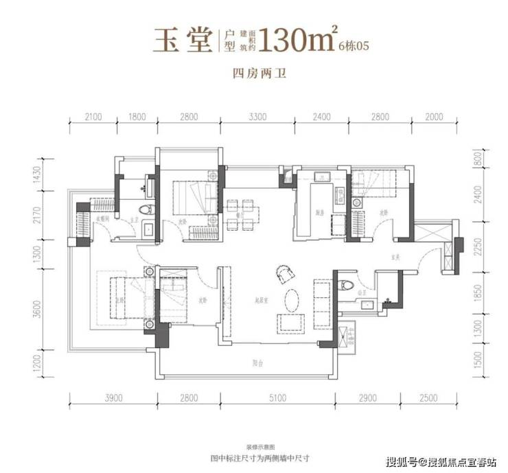 四开间IMAX光幕引景入室,以LDKB家庭聚场升温情感,更以双转角主卧套房,礼献一方休憩殿堂。• 玉堂·建面约130㎡4房2厅2卫:南向四开间,约14.7米IMAX光幕,尺度自成