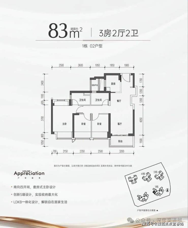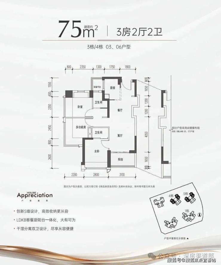 【户型面积】约75-85㎡3房2卫,约94-105㎡4房2卫