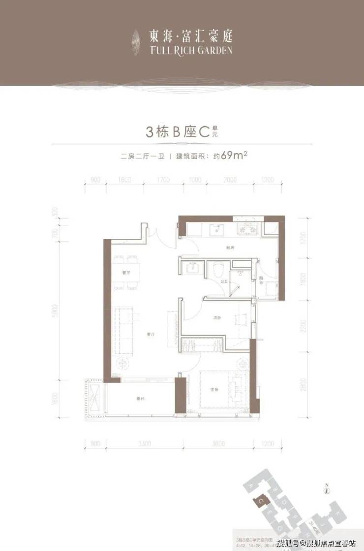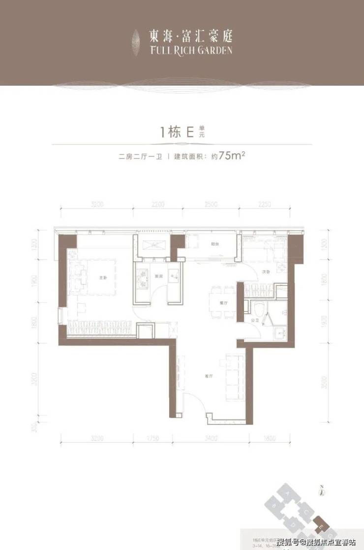 户型为69-75平的2房、