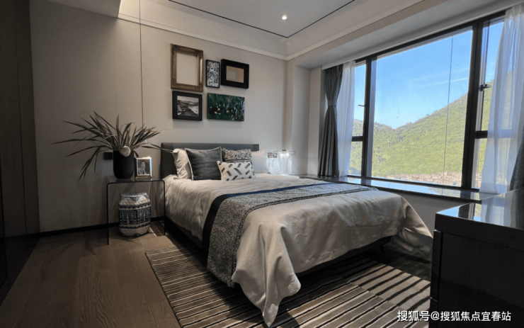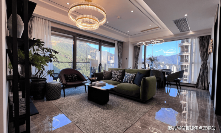 通过四栋高低错落的建筑天际线与高低起伏的梧桐山脊相呼应,让空间与山景结合,自然入室;青山远黛园景,窗窗见景。