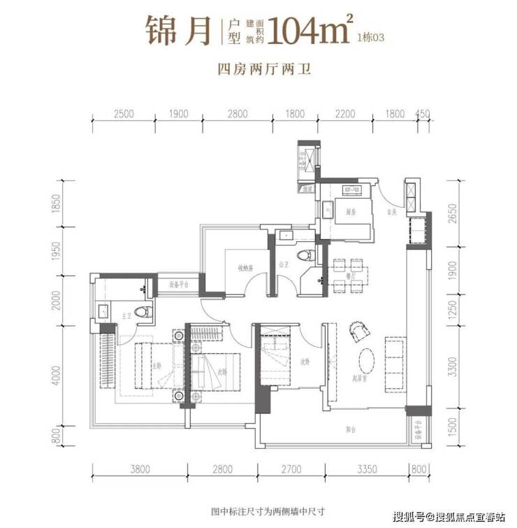【建筑面积104㎡4房2卫】