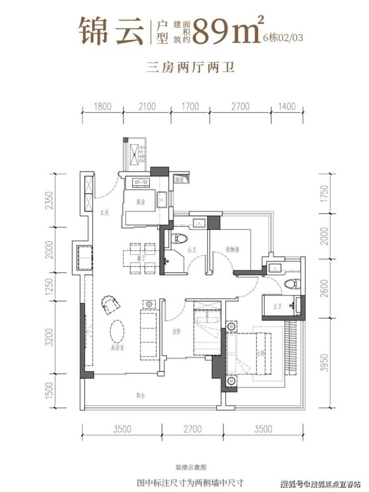 【建筑面积89㎡3房2卫】