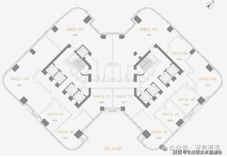 方胜纹双核心筒的设计使得整栋建筑更加高效和私密,并实现了双专梯电梯入户,为塔尖人群高效的工作和私密的生活而服务。转角处曲线设计,拓宽了整个建筑界面,使得建筑拥有270°转角无柱开放式观景视野。是塔尖人群拥揽深港的极佳观景台,足以盛放您帷幄城市的雄心。