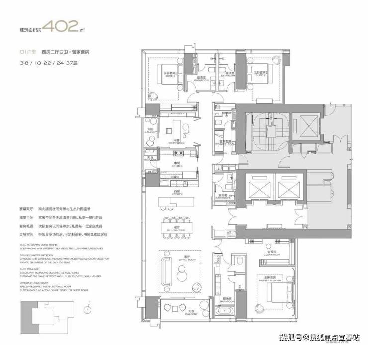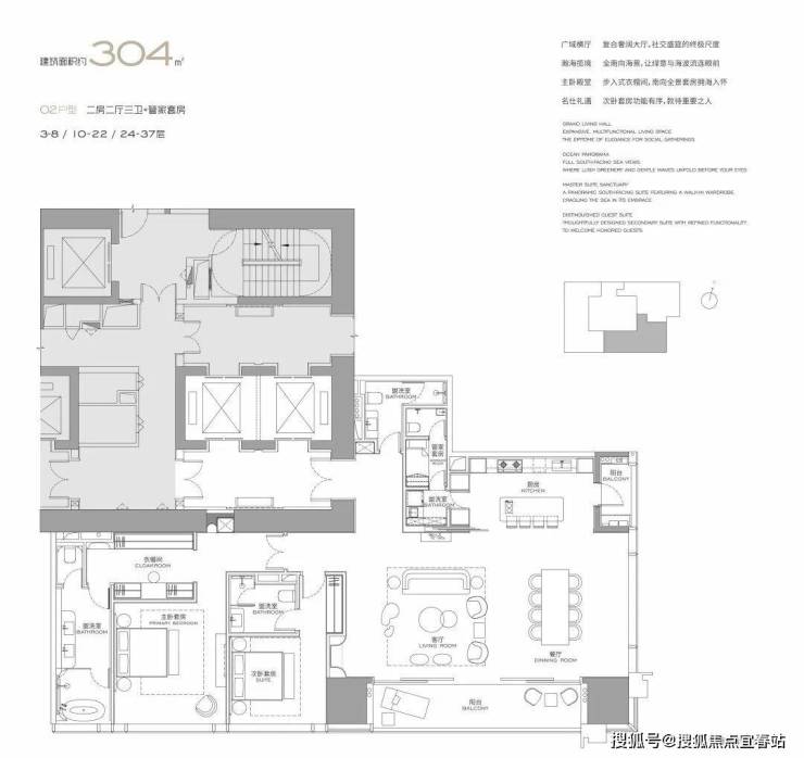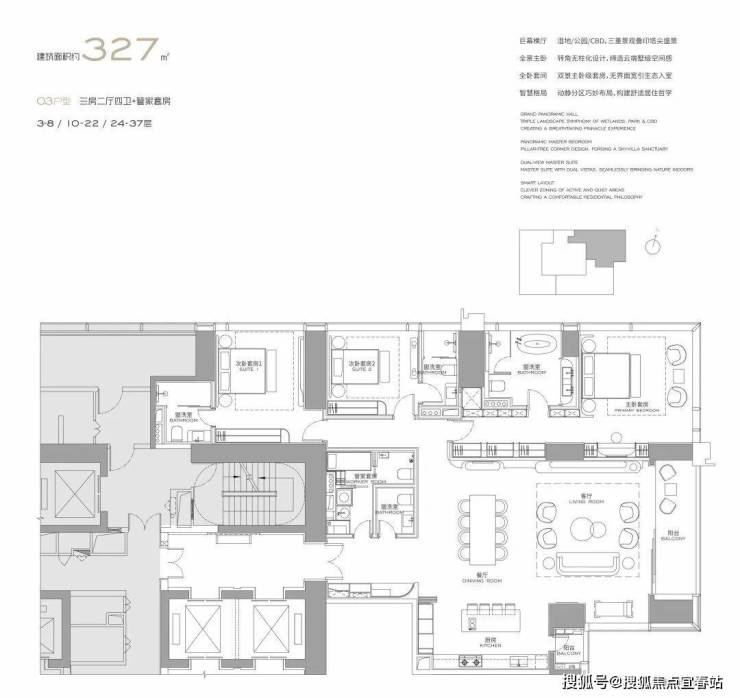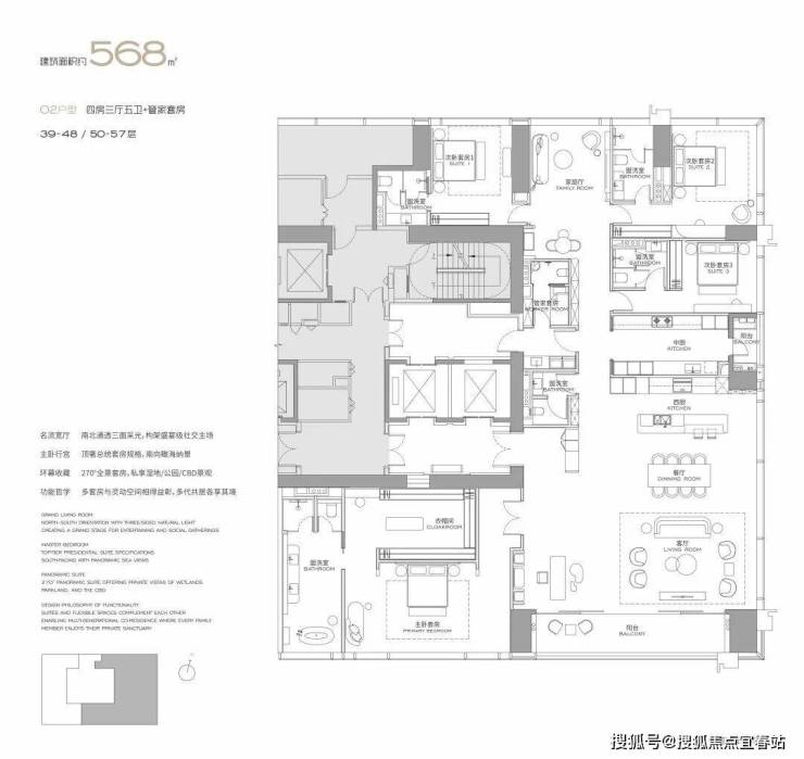 面积设计:300、400、460、570、1000平米纯粹大户型,空间方正,极致私密。