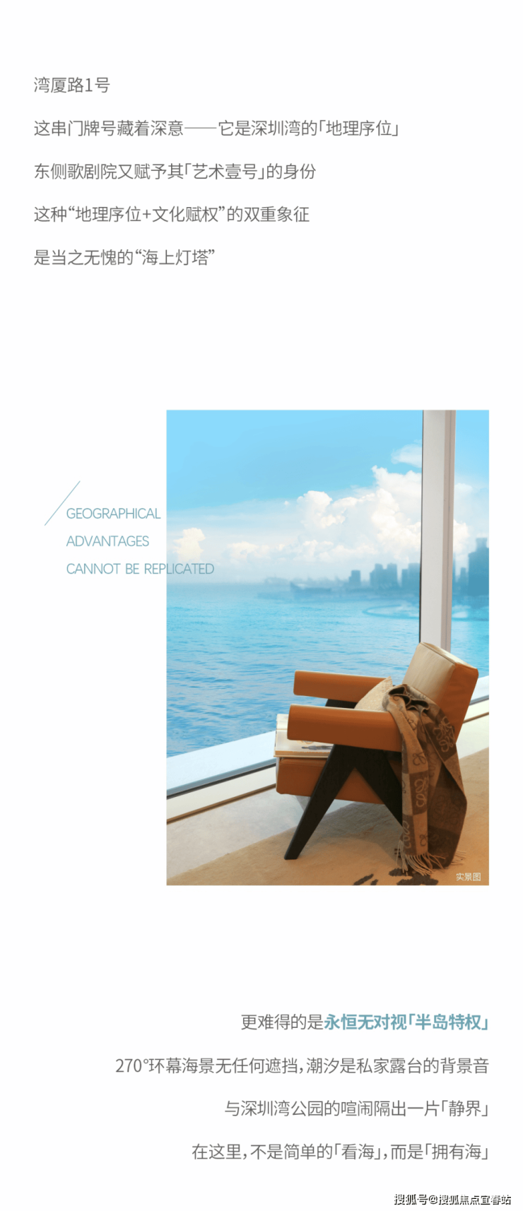 三面环海而立,拥有深圳湾海岸线上不可复制的地理优势,独立、纯粹、静谧、宜居。