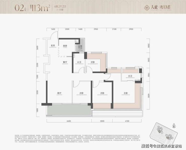 实地看整个动区显得开阔,LDKB(餐客厨阳)一体空间实得有约41.2㎡,例牌的人性化设计如半开放式厨房和S墙都有。双开间阳台约6.4米,放在113㎡的户型里是显得阔绰。