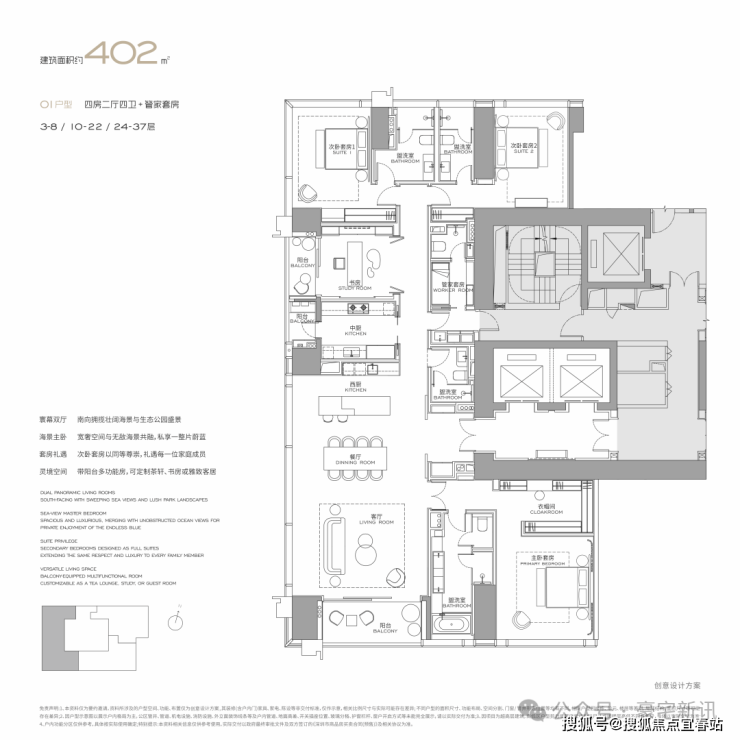 联泰超总湾顶豪公寓户型:304㎡、327㎡、402㎡、568㎡、1000㎡