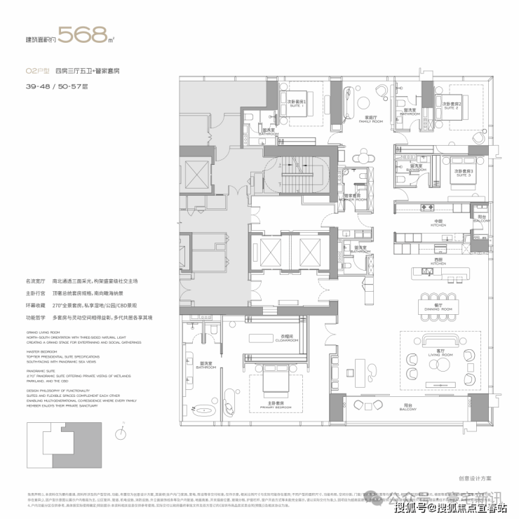 面积设计:300、400、460、570、1000平米纯粹大户型,空间方正,极致私密。