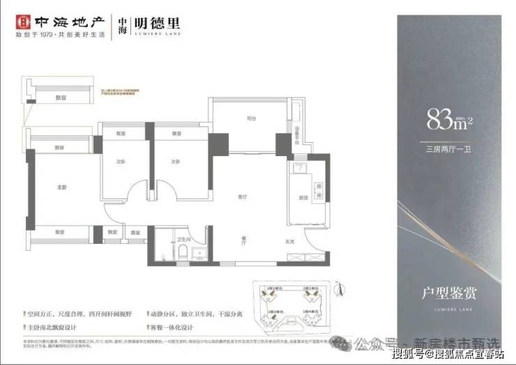 产品面积段:建面约83—113㎡三至四房