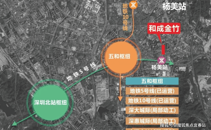 2站即达五和枢纽,全市唯一集3条城际铁路(广深、深惠、深大)和2条城市轨道(5号线、10号线)为一体的综合枢纽