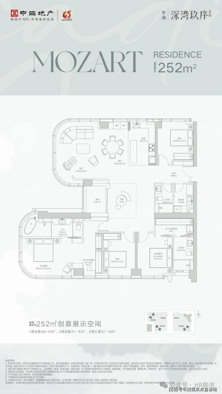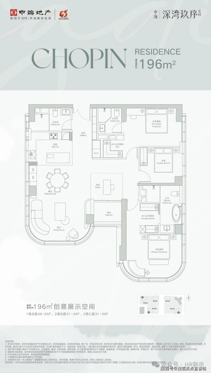 面积段:主力户型为196㎡、252㎡、328㎡大平层,少量400-600㎡顶层复式。