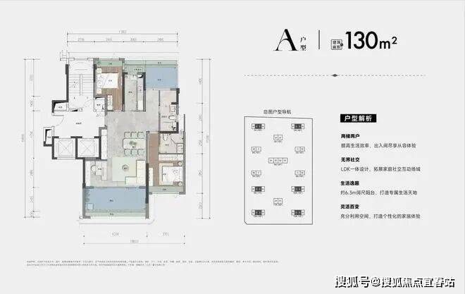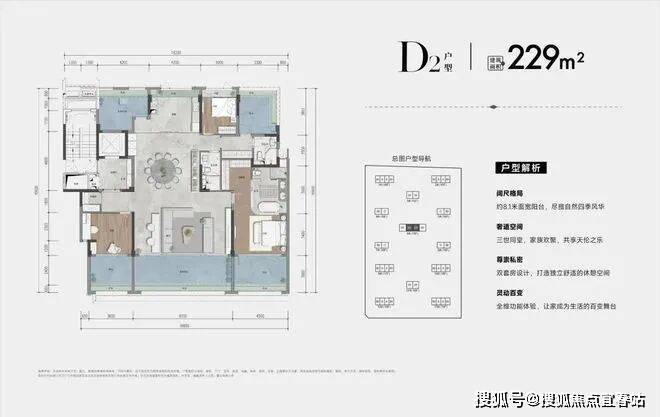 户型鉴赏建筑面积约:130-229m²湾芯环幕大平层纯板楼设计,南北通透,全明采光最宽楼间距约87米层高约3-3.3米270°巨幕观景视野灵动百变空间格局亲海现房全交付,现在买现在住,即享海居生活