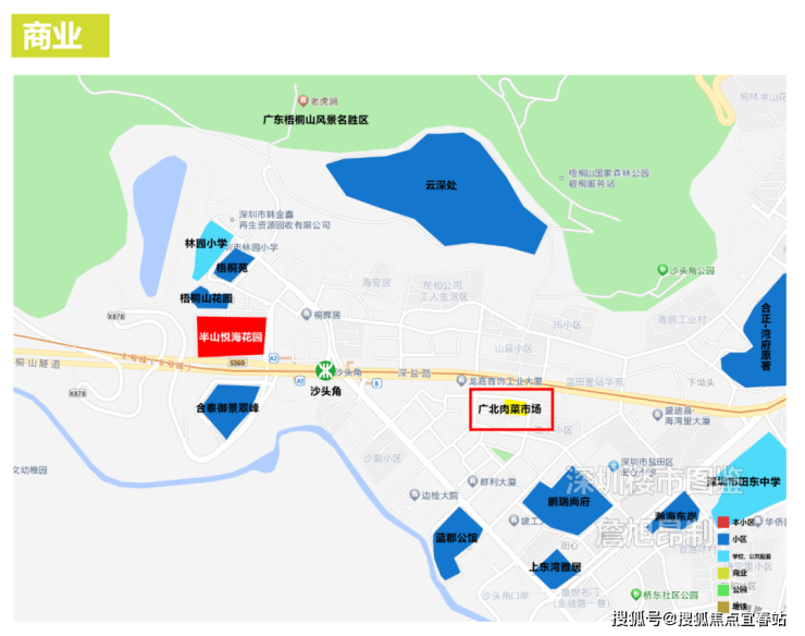 周边距离730米有广北肉菜市场(深圳市盐田区政府采购中心西北),距离2.1公里外还有和亨城市广场。