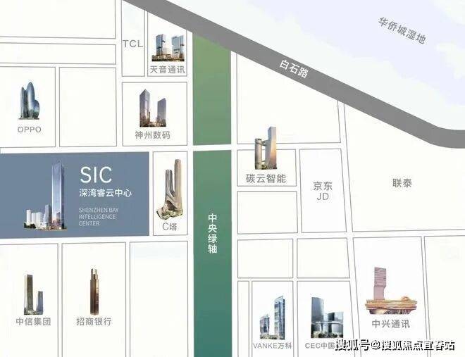 深圳湾超级总部基地(简称深超总)位于深圳市域核心地段,与香港隔海相望,是招商银行、中国电子、万科集团等世界500强企业总部。总占地面积117公顷,建筑面积约520万㎡,规划就业人口约30万,由深圳地铁集团和万科集团联合开发。