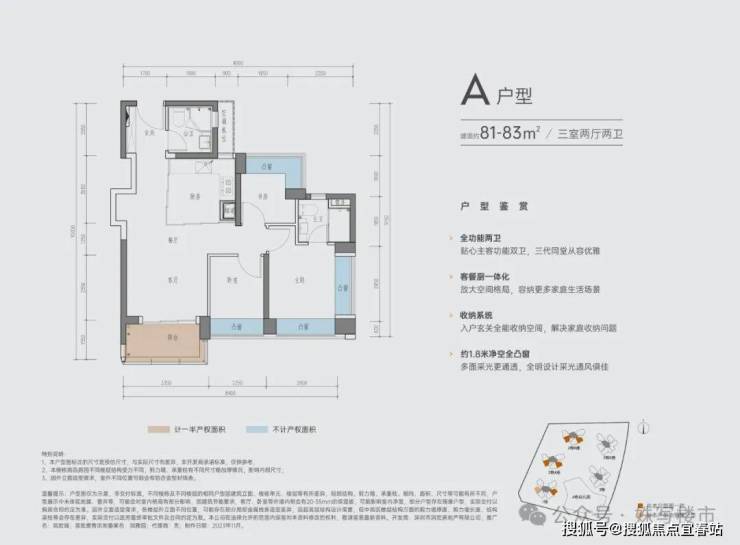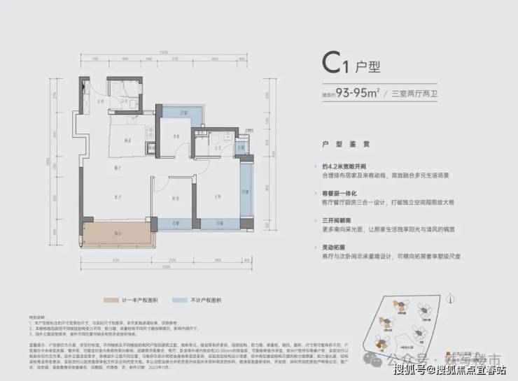 竖厅设计,亮点在于主卧带双飘窗,设计两卫,但鸡肋的厨房,我实在不太明白,是不是卫生间真的比餐厅重要很多........