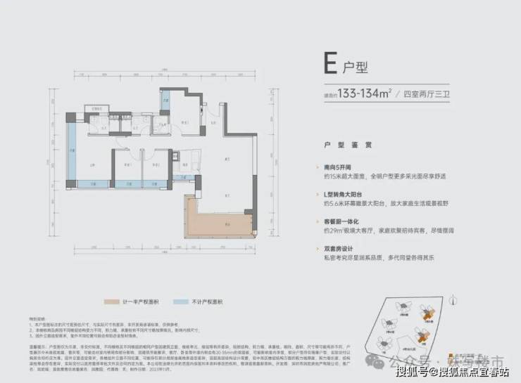 5开间朝南,约15米面宽,且双套间设计,主卧三面凸窗采光,适合大家庭居住。