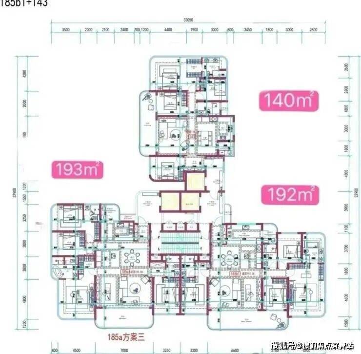 253–332㎡家族平层:2T2板楼设计,独立入户,双主卧套房均带海景卫浴,视野无遮挡,定位为顶奢客群。