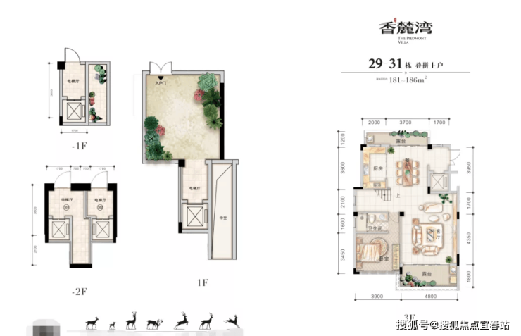 叠拼别墅是上下两户叠加在一起的一种新式别墅,其内部空间具有独栋别墅的一切元素。香麓湾叠拼别墅上户为-1、3、4、5楼,-1层为地下车库,可乘电梯直达3楼,1楼专享独立院落,又与下户出入互不干扰。各楼层空间布局合理,自然通透,多重生活场景,打造全龄人居空间。