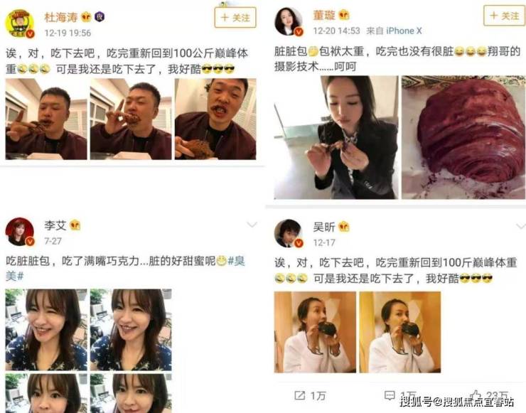 图:多个明星发布吃脏脏包动态
