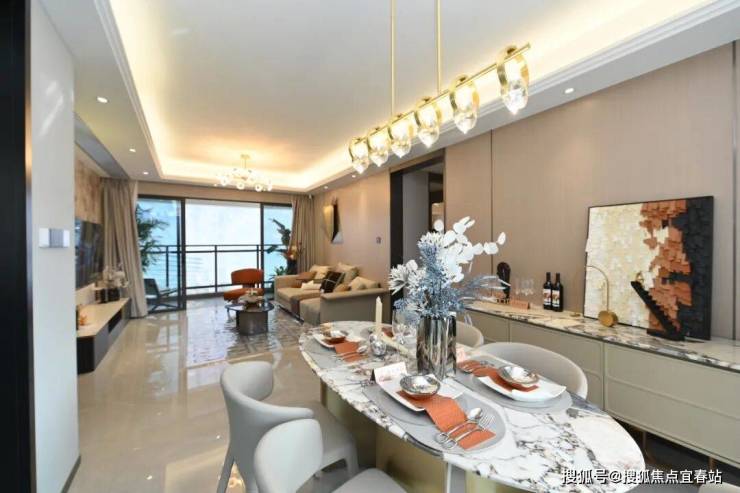 客餐厅有约4米大开间,大幅提升了居住舒适度和品质,足够承载三代同堂大家族的欢声笑语。
