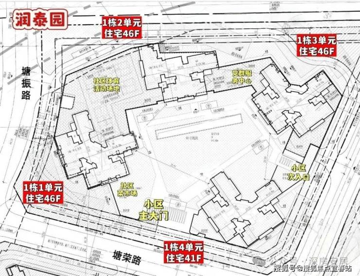 后面要入市的润泰园,总占地面积约1.4万㎡,总建筑面积约14.68万㎡,计容建筑面积约10.51万㎡,容积率6.74,绿化率40.01%,共由4栋总高41-46层高的住宅组成,其中1栋1/2/3单元住宅46层,1栋4单元住宅41F,配建有社区医院+菜市场。