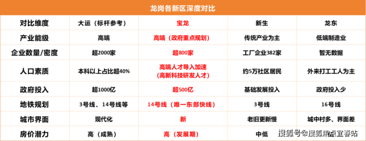 在龙岗众多发展新区中,宝龙是唯一从产业能级、城市规划、人口层级上综合发展,全面对标大运的新区,是战略性的重点发展区,对区域发展而言,未来的配套落地,房价潜力,都不是一般新区可比!