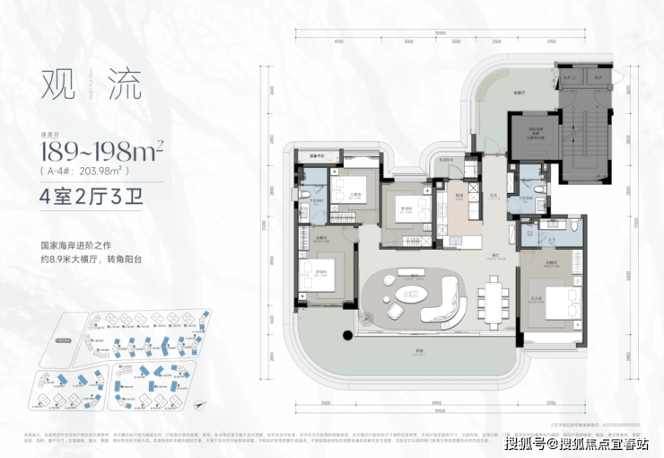 项目涵盖建面约138-600㎡面积段户型,一梯一户。户型科学化布局、动线设计合理,并配置双套房(仅190m²以上户型)搭配宽敞步入式衣帽间、独立卫浴空间;客厅、餐厅、厨房、阳台四大空间相互串联且独立,增加居住空间感;搭配约3.1-3.6米层高,提升户内采光与通风效果,尽可能优化景观视野。约180°- 360°甲板式阳台环绕室内,形成流畅洄游动线。