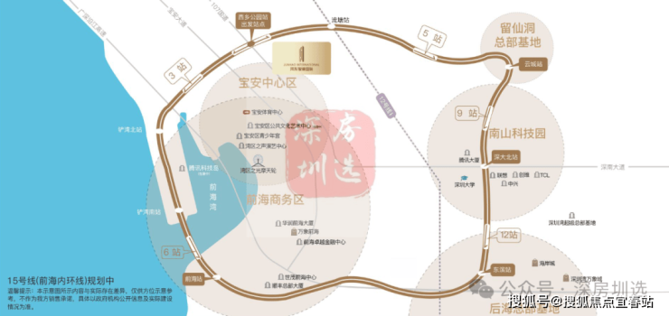 地铁15号线(在建中)作为深圳首条环线轨道,起终点均为前海站,作为战略上的“产业线”,极速串联前海、宝中、大铲湾“腾讯科技岛(在建中)”、南山科技园、后海总部基地、留仙洞总部基地等高端产业密集区,推动资金流、人才流、技术流汇聚,构筑“前海内环”经济大动脉。