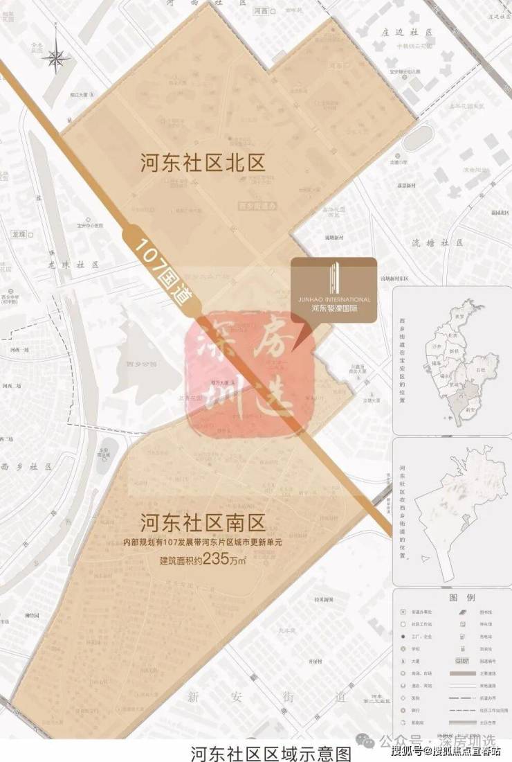 河东社区作为大型社区,分为南北两大区域,打造河东百万大城,其南区规划107发展带城市更新单元,总建筑面积达235万㎡,集办公、商业、酒店、公园等多元业态,带动人流聚集。