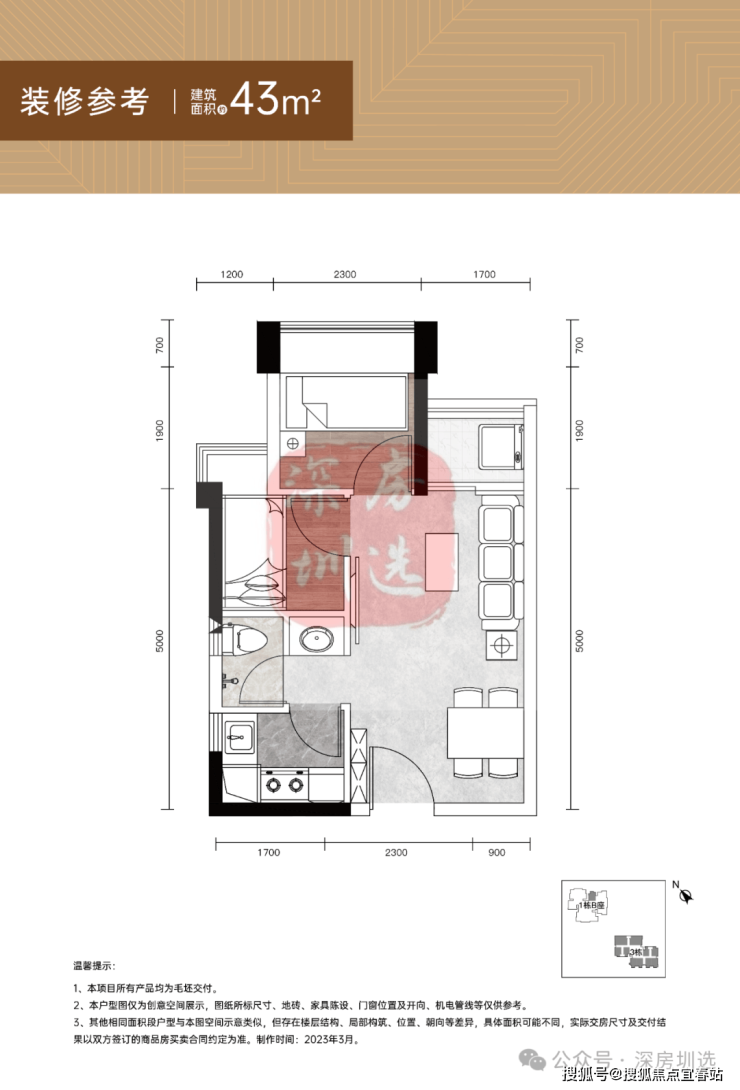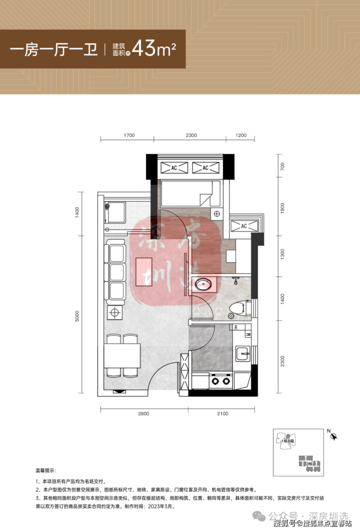 建面约45,户型方正、带阳台、通燃气,首付30万起,抢占核心地段。