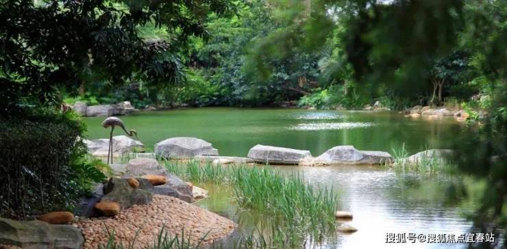项目内部打造了一条沿着台地蜿蜒的溪流,该水系为市面罕见的活水溪流,贯穿整个社区园林,依据溪岸的曲直不同和地形变化,打造叠水、溪流、瀑布、水潭等多样特色水景,溪岸植物种类繁多,与水流互为风景,沿岸专门设置不同的亲水平台,营造自然灵动的栖心之境。