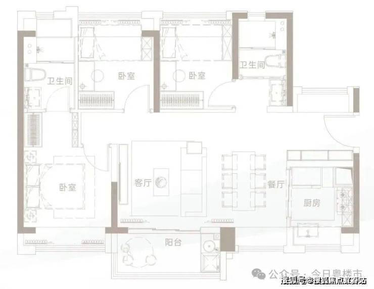 此户型为三面采光格局,整体空间明亮通透。L型厨房设计合理,操作便捷;明厨明卫,双面采光卧室,营造舒适的起居环境。该户型非常适合首次置业或预算有限的刚需家庭,在有限面积内实现了三房的功能性。