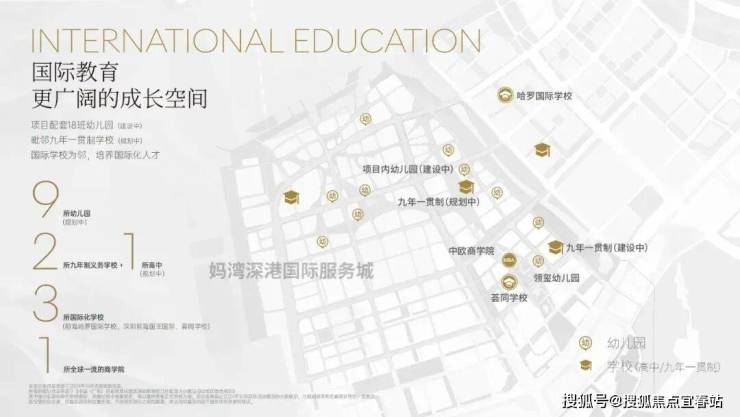 学校:楼下配备18班幼儿园,隔壁规划1所九年义务制学校;荟同,中欧等国际教育资源
