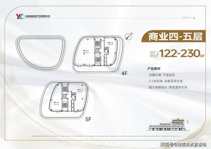 4-5F 挑高4.5米 建筑面积:122-230㎡ (4套)可做独立电梯 环绕露台使用空间更多