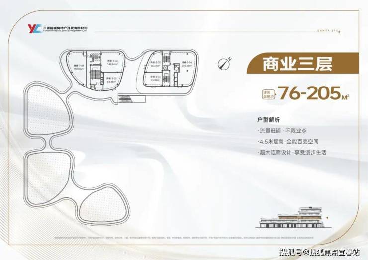 3F 挑高4.5米 建筑面积:76-205㎡ (6套)带露台大平层商铺
