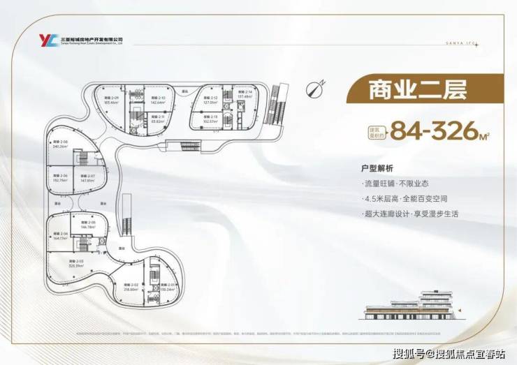 2F 挑高4.5米 建筑面积:84-326㎡ (14套)灵动空间 便捷使用