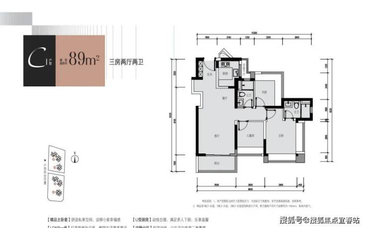 项目户型面积为82㎡3房1卫.89㎡3房2卫.108㎡4房2卫户型,为3梯6户设计,毛坯限价4.89万/㎡