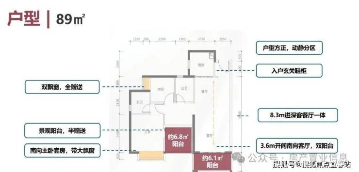 建面约89㎡的户型可以说是优质户型,客厅开间尺度和卧室尺度上做到了均衡,客厅开间约3.6米,主卧开间约3.3米,远超市面上同等面积的户型尺度。完全可以媲美一些超高层100㎡以上的户型尺度,进门看的第一感觉就是采光非常通透,视野开阔,看大雁山和石岩湖,格局也很方正。