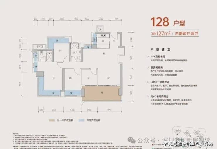 四开间南向采光,约6米开间阳台,客厅与次卧可拓展,双L型飘窗,多面采光通透舒适,开阔视野 、无遮挡、看公园景观