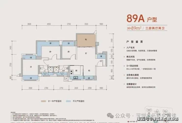 4+X空间设计,四开间朝南,大面宽大采光南北对流,厨房/餐厅位置可以隔出多一个房间,主卧套房设计,还可以做步入式衣帽间。