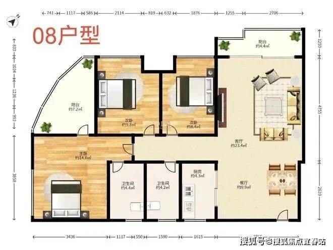 约103平 3+1房2卫