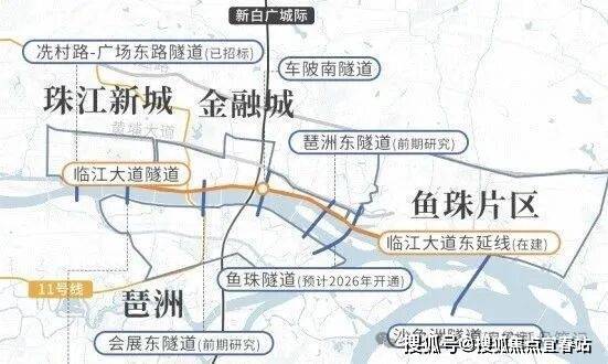 与此同时,新白广城际也将在今年开通,琶洲和金融城的距离将缩短成一个站。其实,去年开通的11号线,已经实现了这一点。未来,随着琶洲与鱼珠隧道,琶洲与珠江新城隧道的开通,一江两岸将被彻底缝合。