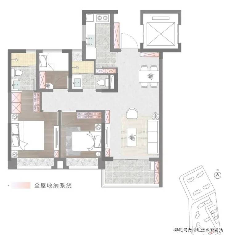 建筑规划:由11栋17-25层高层洋房,点状分布组成,总户数达944户。社区