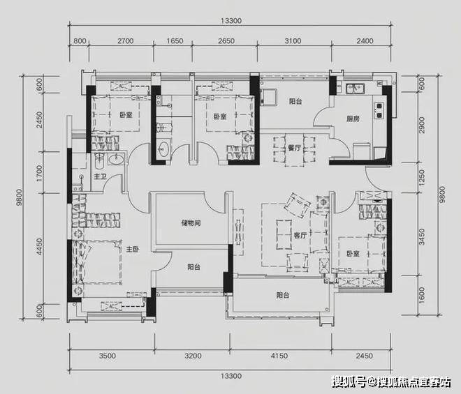 E03户型:约135㎡ 稀缺五房两厅两卫: