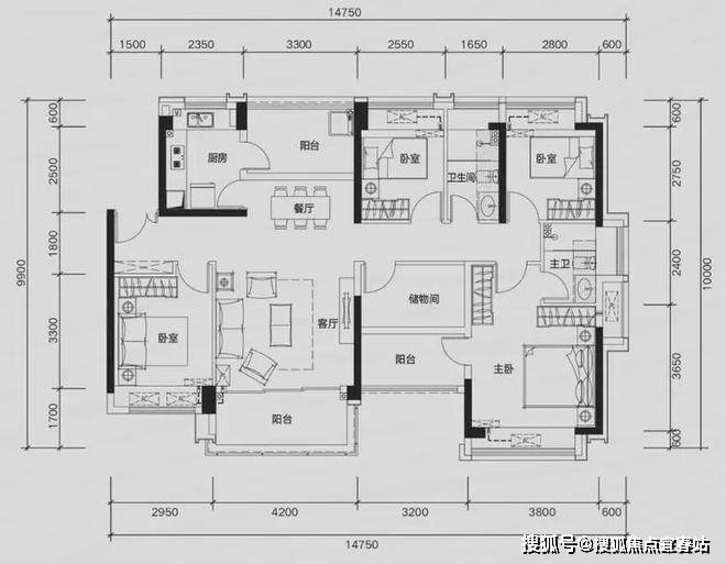 89㎡四房两厅两卫,同等面积多一间房,二孩家庭也能三代同堂。