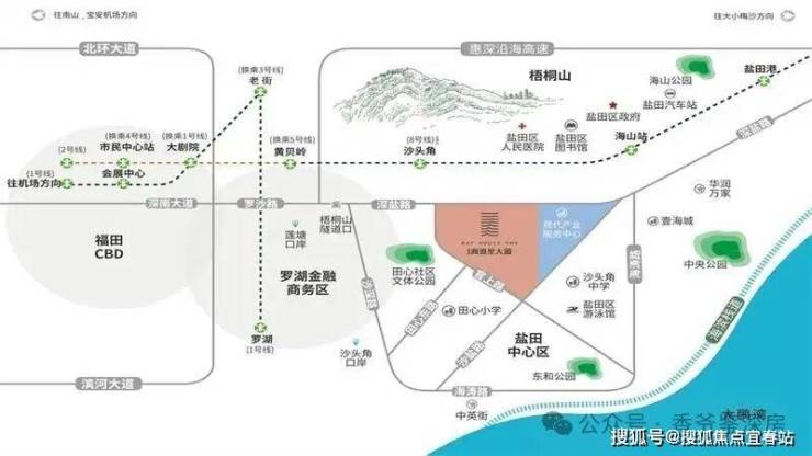 作为地铁8号线双地铁口物业,直线距离海山站约500米、沙头角站约700米,3站直达罗湖莲塘,6站接驳2号线抵达福田CBD;未来还将串联规划中的地铁32号线(盐田-大鹏)与18号线(盐田-宝安大空港),实现1小时全域通勤。更值得关注的是,项目300米处即是总建面约108万㎡的田心工业区旧改,将打造商业旗舰与盐田新门户,区域价值潜力可期。