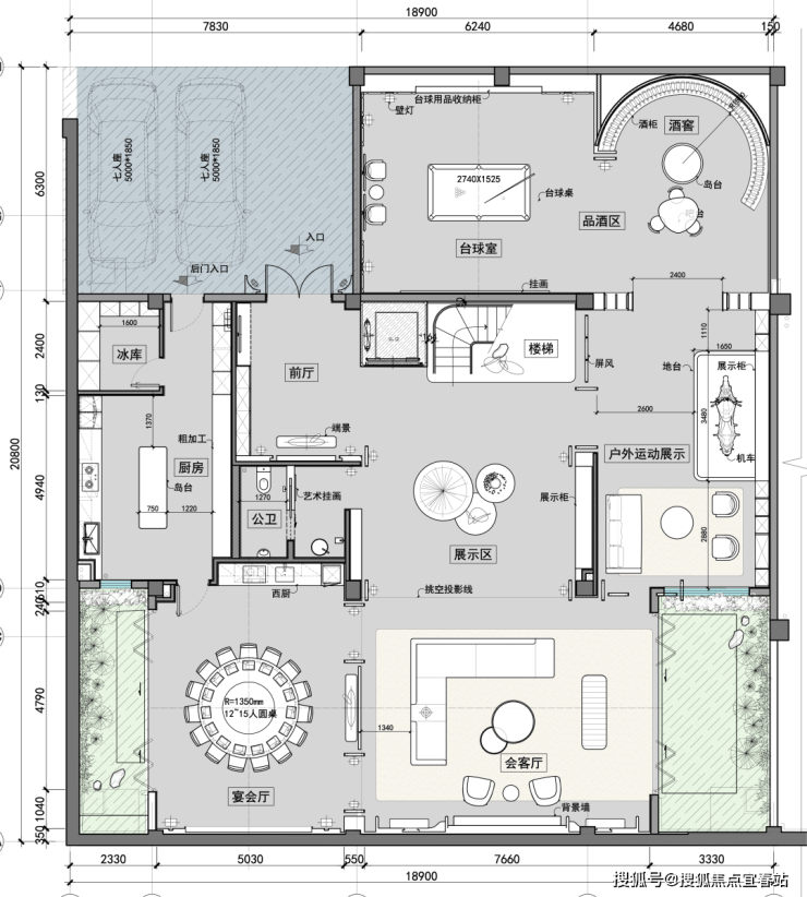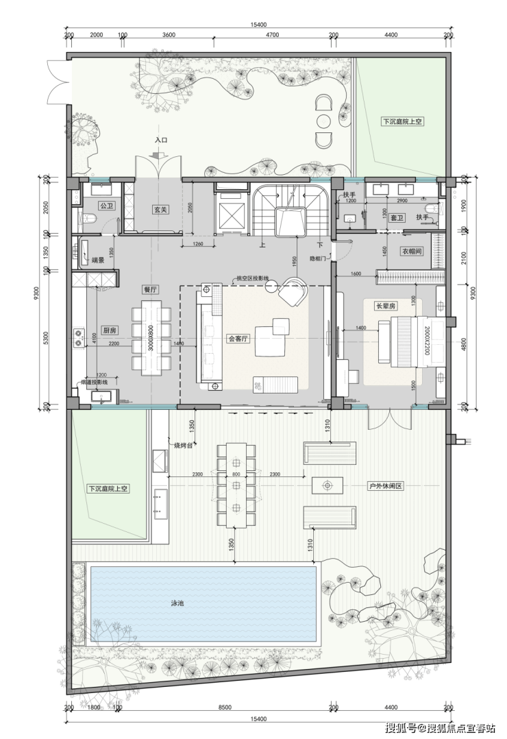 负一层下沉庭院周边设工人房、家政间,储物无忧;